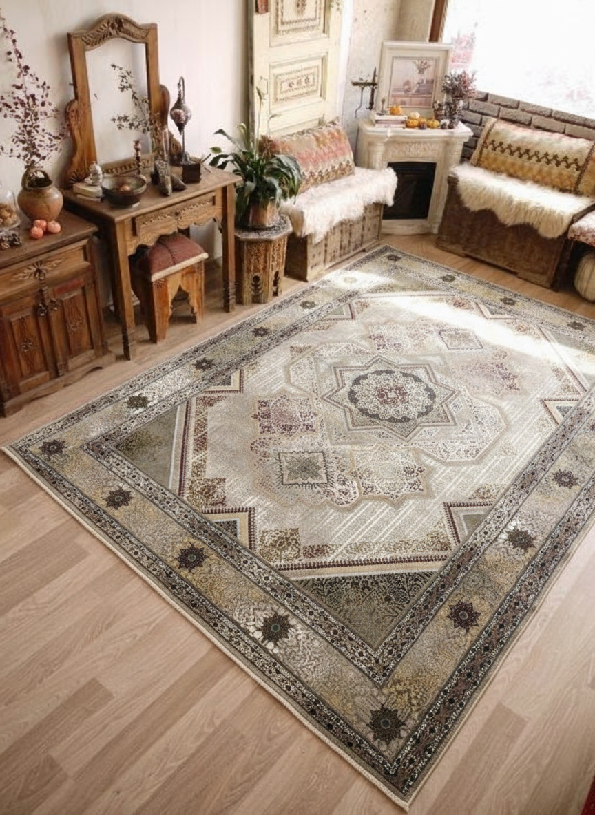 فرش ماشینی هیبا وینتیج سیلور 1200 شانه
